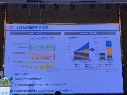 Przedstawił również prognozy dotyczące globalnego rynku fotowoltaicznego: 1. Energia fotowoltaiczna doprowadzi do reformy światowej energetyki. 2. Moc fotowoltaiczna wzrośnie do 2,48 TW w 2030 r. i 8,5 TW w 2050 r. 3. Energia fotowoltaiczna będzie stanowić 13% całkowitej produkcji energii.